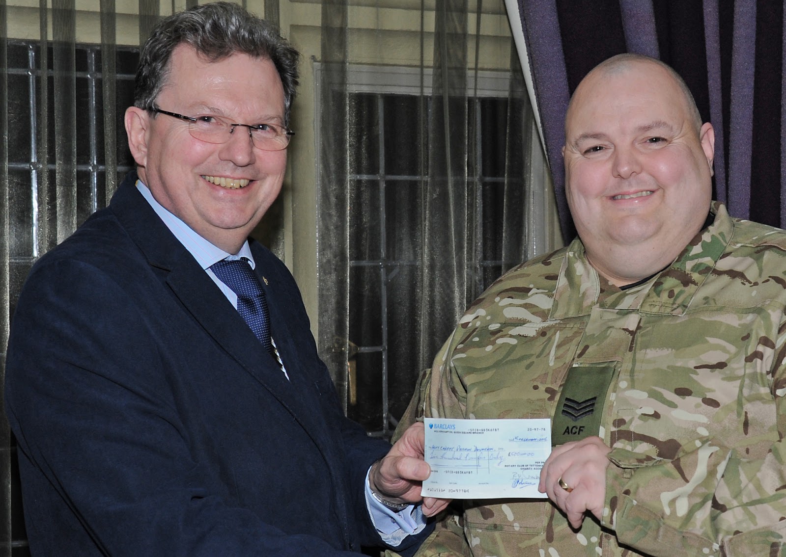 We are grateful to the Cadets and the Squadron’s volunteers for their help with our Christmas fundraising and President Rob was pleased to present Flt Lt Haynes with a donation which will help ensure that the Squadron continues to transform lives.