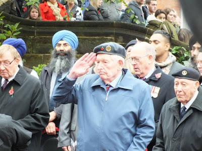 There was an excellent turnout for the Observance with the Band of the West Midlands Fire Service leading a 400-strong parade including detachments from ex-Service, Regular, Reserve, Cadet Units and representatives of other local uniformed organisations from Wulfruna Street to St Peter’s Square, where a Drumhead Service – the traditional form for a religious service attended by troops in the field – took place, followed by a second service in St Peter’s Collegiate Church.