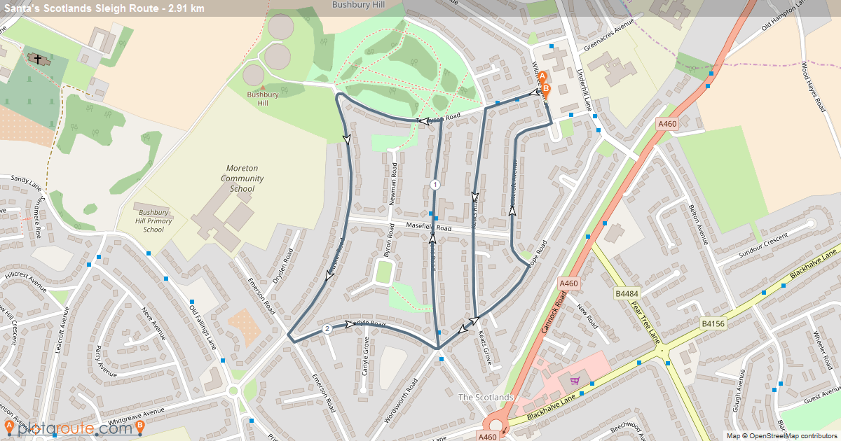 The Sleigh route will visit Aldersley Avenue, Pendeford Avenue, Claregate Island, Blackburn Avenue, Burland Avenue, Lynton Avenue, Blackburn Avenue, Derby Avenue, Crossland Crescent, Aldersley Road, Green Lane, Blakely Rise, Blakeley Avenue, Green Lane finishing at the Pilot Pub.