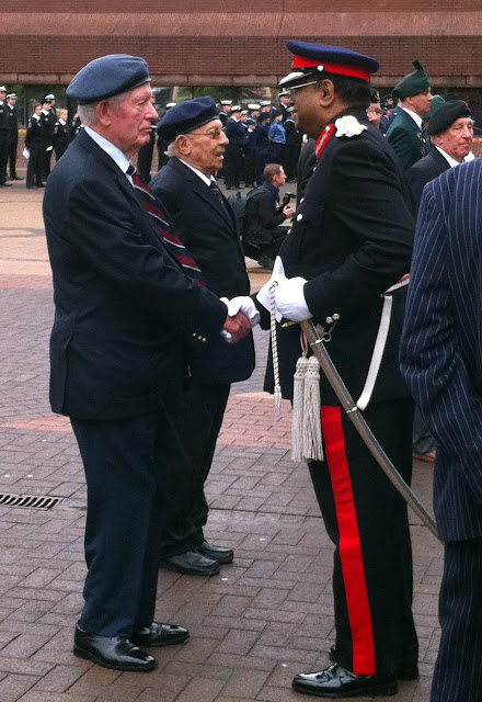 Regular, reserve, and cadet forces paraded through Wolverhampton today together with ex servicemen (including Club members John Wain and Les Bouts). The salute was taken by City Mayor Councillor Bert Turner and Her Majesty’s Lord-Lieutenant of West Midlands, Paul Sabapathy CBE before an outdoor drumhead service in St Peter’s Square.